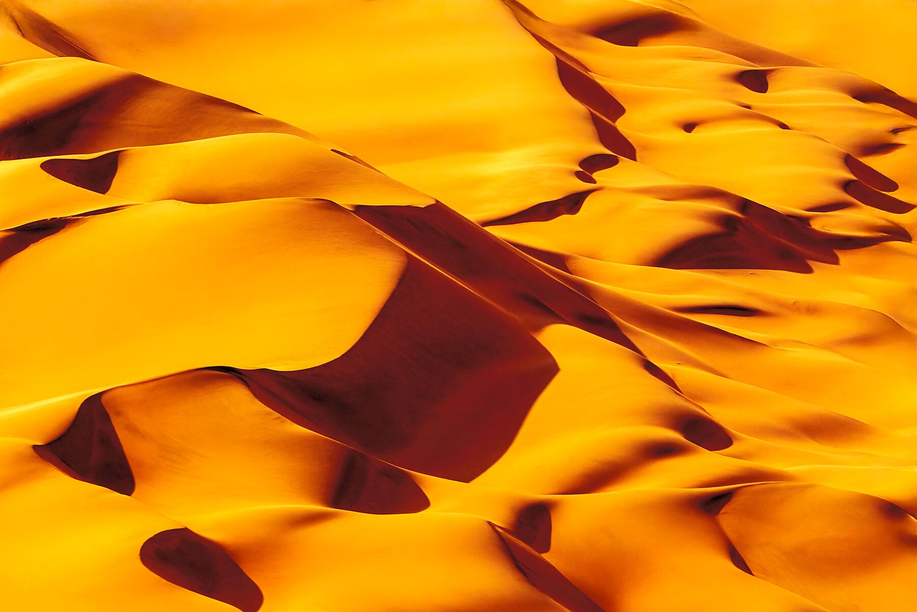 Licks of fingerlike red and gold waves harken to flames of a fire.