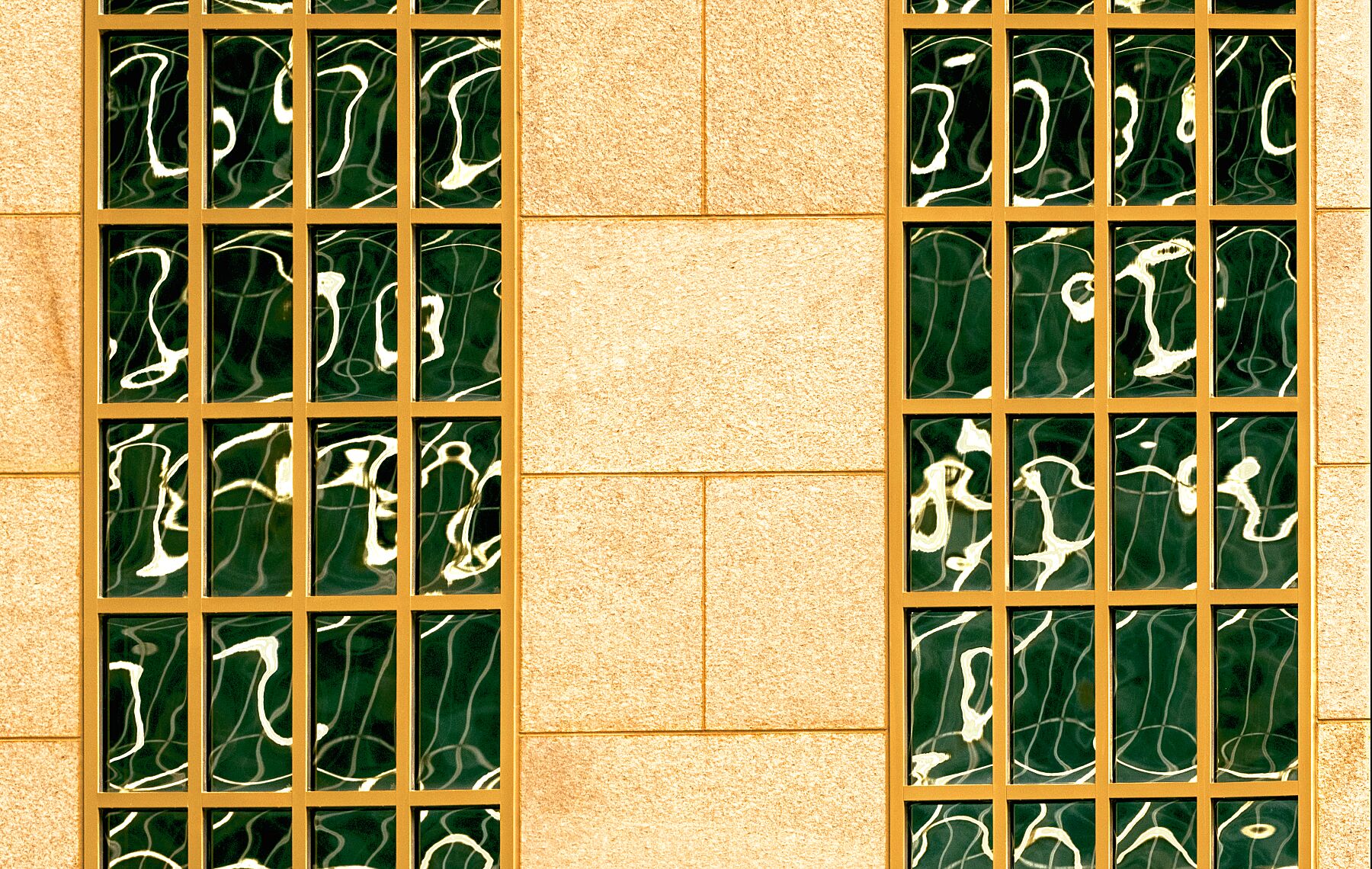 Green and Orange Windows with White Squiggles