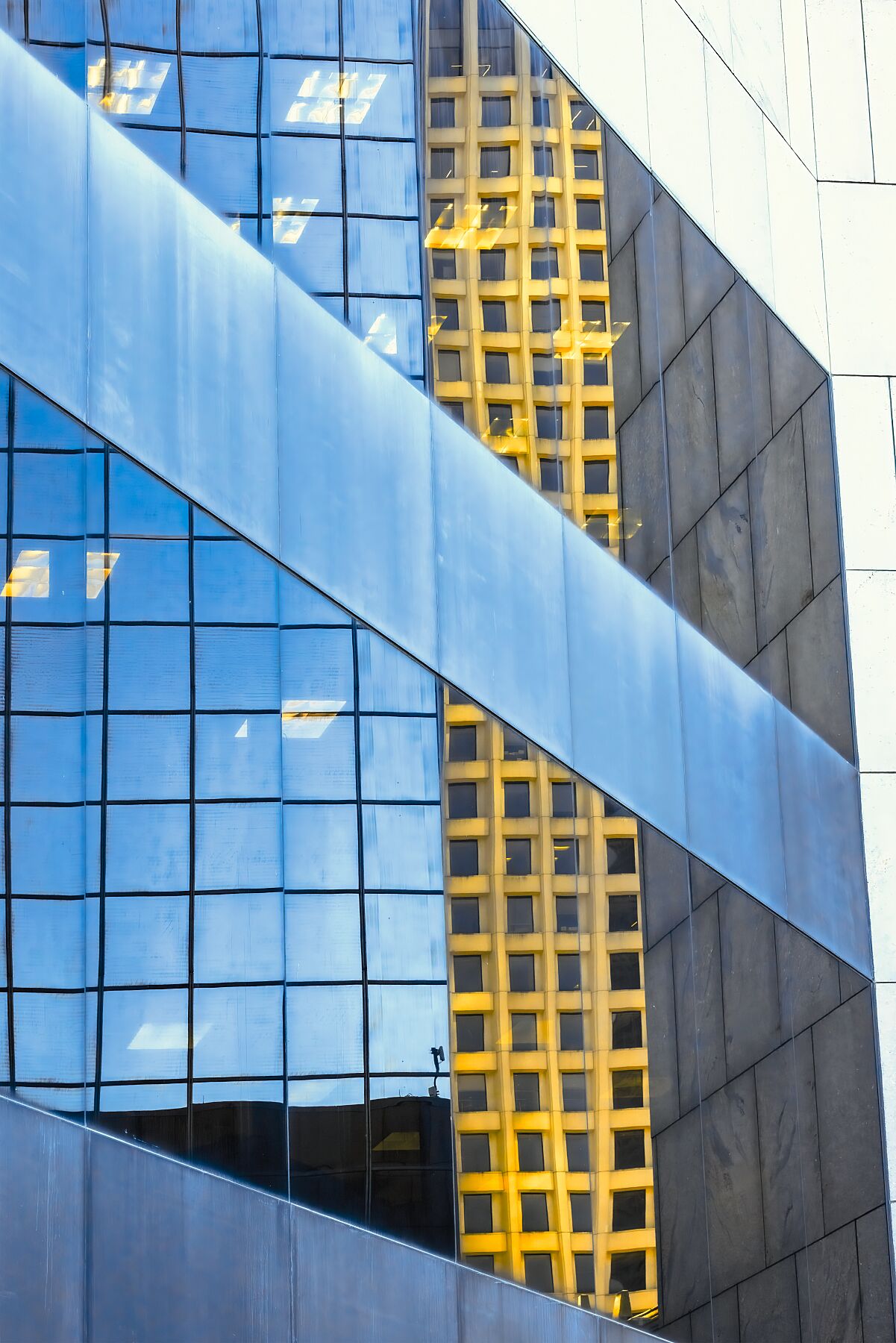 Standing outside this office building, one could not be blamed for confusion regarding what is a solid surface, what is a reflection, and what is happening inside. The magic of light plays out in real time!